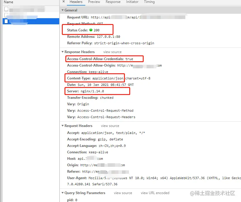 (3)响应头中的Access-Control-Allow-Origin一定不能为*,必须是指定的域名