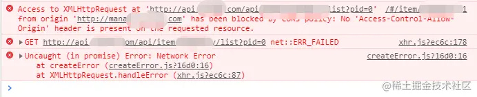 跨域问题示例:从前端页面mng.xx.com发送ajax请求,通过vue-router将请求发送到zull网关api.xx.com,由于ajax请求存在跨域问题,因此发生错误。