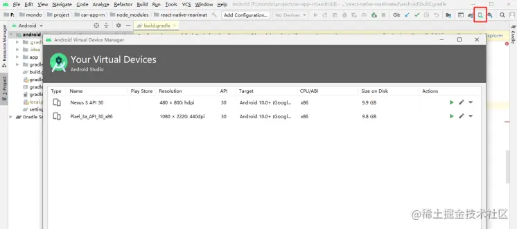 React Native 调试可以使用 Android Studio 自带的模拟器