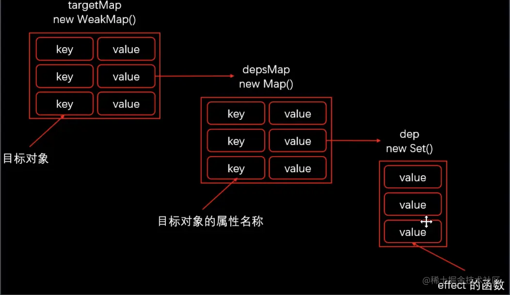 收集目标对象,目标对象的属性,属性对应的箭头函数