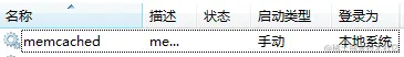 [控制面板]->[管理工具]->[服务] 找到 memcached 服务,双击它打开如下图