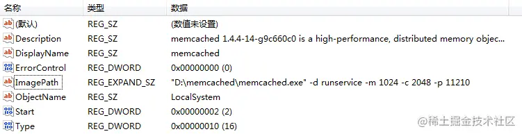 HKEY_LOCAL_MACHINE\SYSTEM\CurrentControlSet\Services\memcached