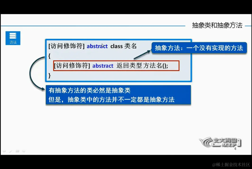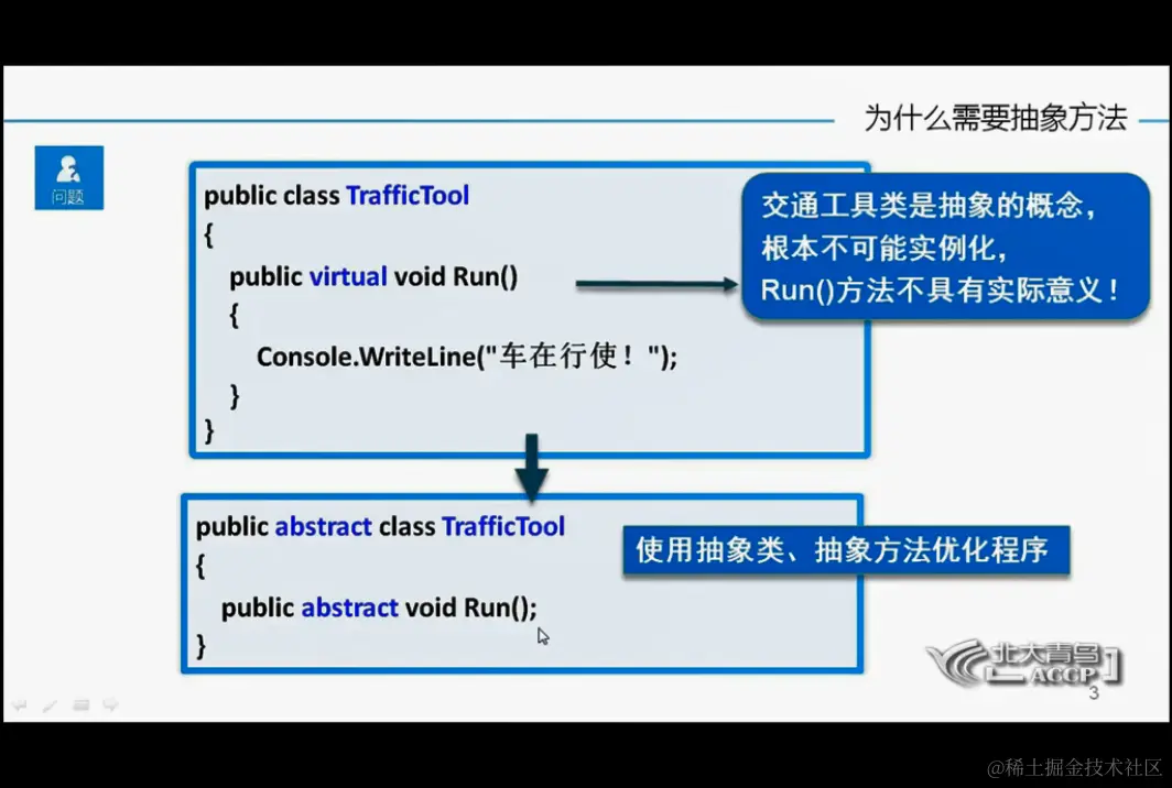 抽象类与抽象方法 ifubing 2021-01-10 93 阅读1分钟 抽象类与抽象方法 如果不希望一个类被实例化 可以把它型为抽象类 我们可以写抽象方法 抽象方法所在的类一定得是抽象类 abstract 关键词 抽象方法 子类必需要实现父类的抽象方法 除非子类也是抽象方法 抽象类的使用 抽象方法vs虚方法 小结