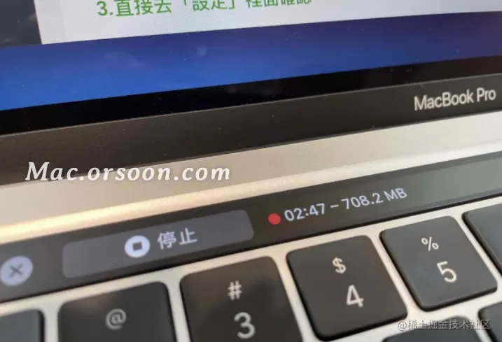 如果不小心按到屏幕录制的话,在上方的工具列会有相关的符号出现,如果你的电脑是配有Touch Bar 的版本,在Touch Bar 上则会明显地显示出来。