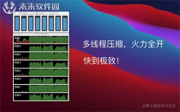 这还只是4核心CPU的使用情况,如果是更好地8核心Mac,相信压缩速度更是翻倍上升。