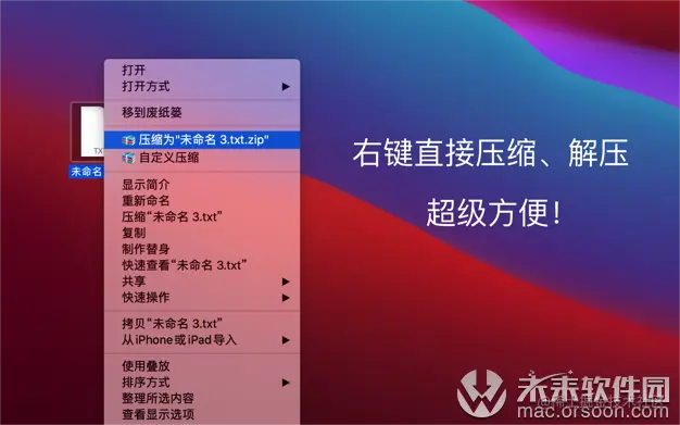 首先,MyZip放弃了Mac上落后的拖拽解压压缩模式,采用『右键菜单』进行压缩、解压,极大的符合了用户最初的使用习惯。