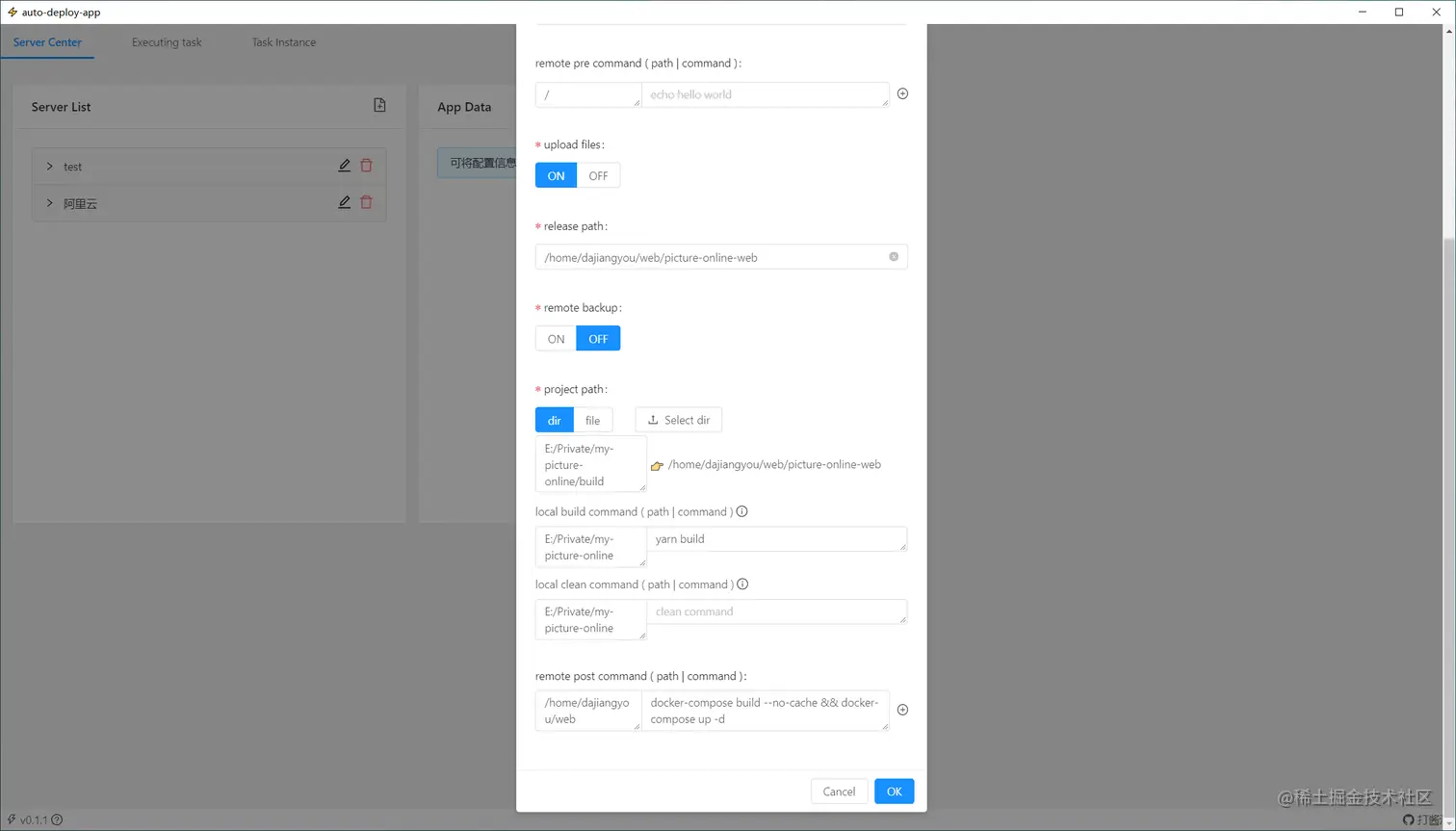 创建任务(本地编译-->上传文件夹-->编译并启动容器) -