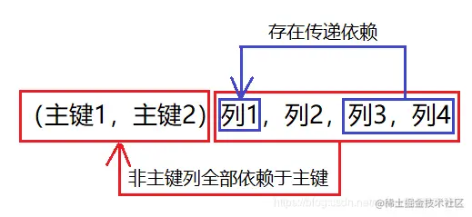 第三范式是建立在第二范式上的;非主键列必须完全依赖于主键列,不能出现非主键列既依赖主键列m,也依赖非主键列n