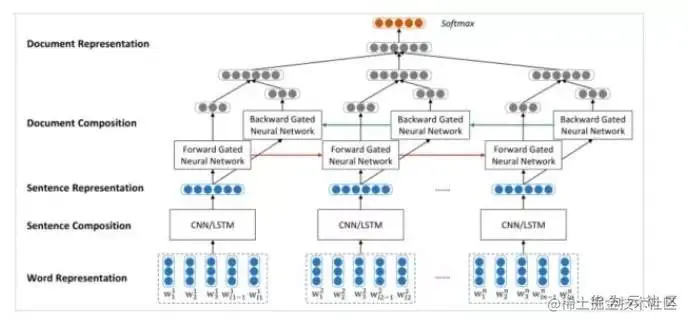 HAN为Hierarchical Attention Networks,将待分类文本,分为一定数量的句子,分别在word level和sentence level进行encoder和attention操作,从而实现对较长文本的分类。相比于上述的算法模型,HAN的结构稍微复杂一些,具体可以分解为以下步骤。