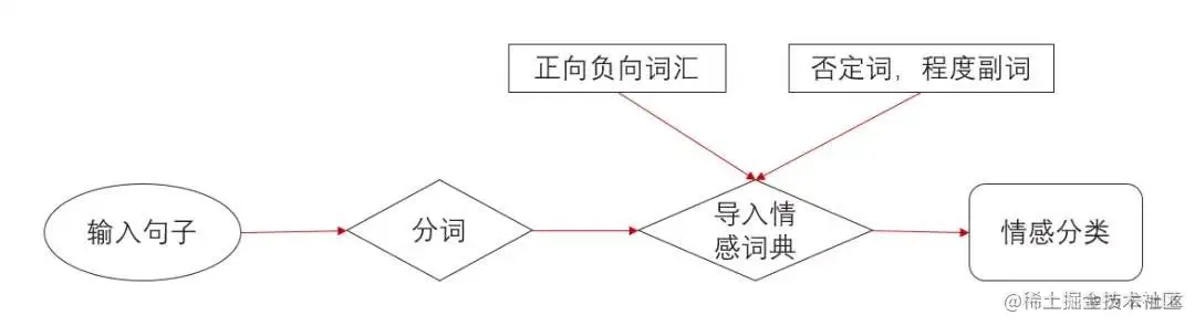 基于情感词典的方法,先对文本进行分词和停用词处理等预处理,再利用先构建好的情感词典,对文本进行字符串匹配,从而挖掘正面和负面信息。其大致流程如图所示: