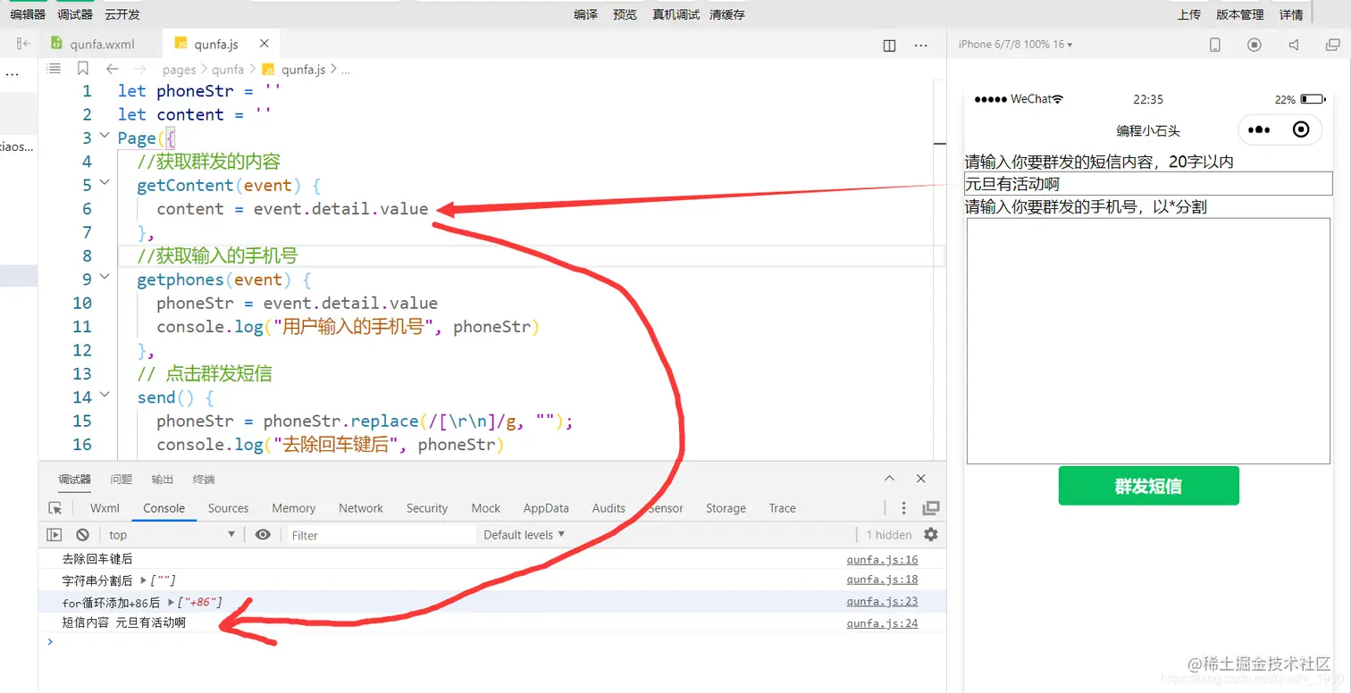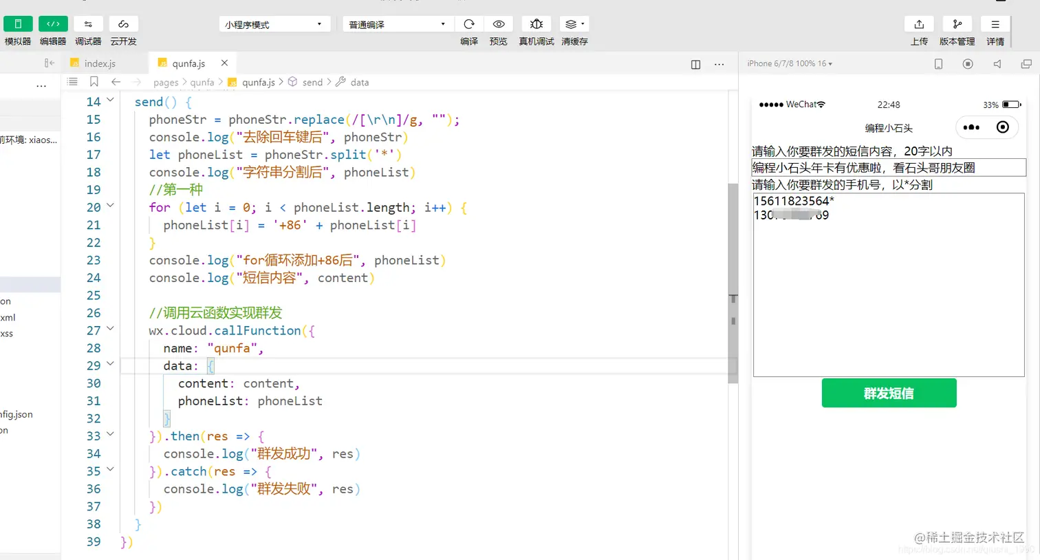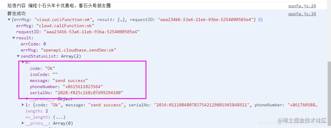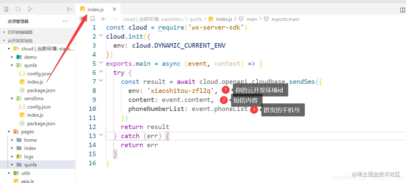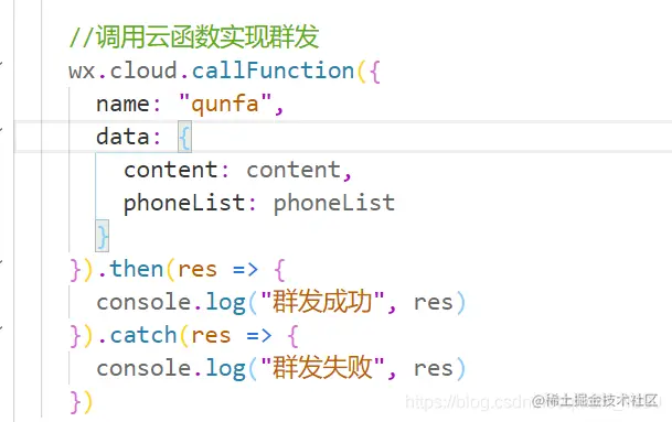 短信内容和群发的手机号都已经成功拿到了,我们接下来就要来编写群发的云函数了。