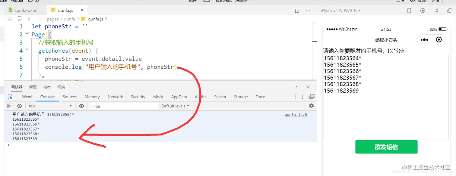 可以看到,我们成功的获取到了用户输入的手机号了。