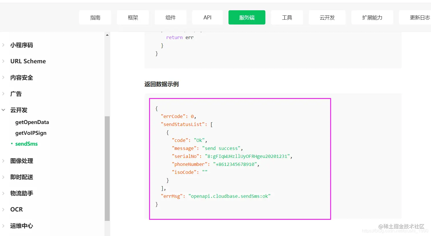 官方给的发送成果返回字段如下