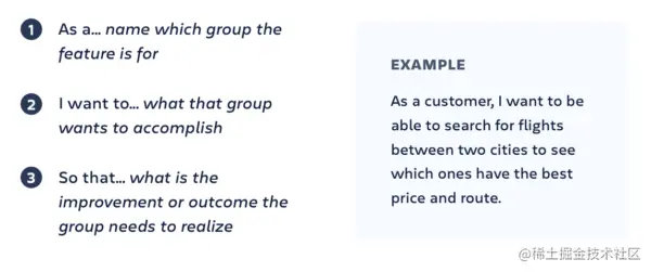 为团队记录上下文的一种众所周知且可靠的方法是使用传统的用户故事,通常由三部分组成: