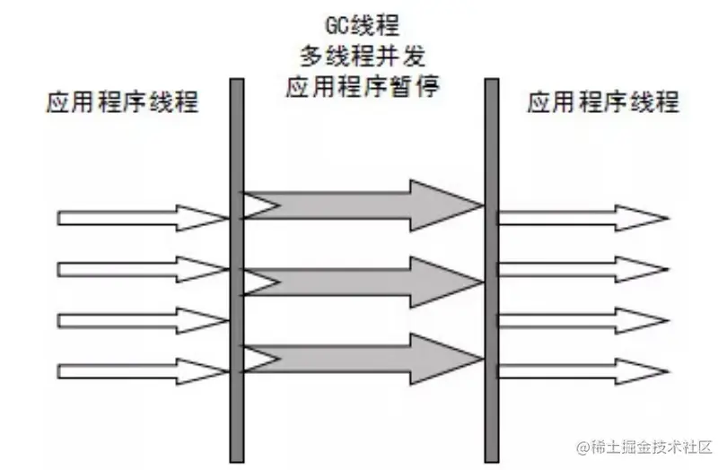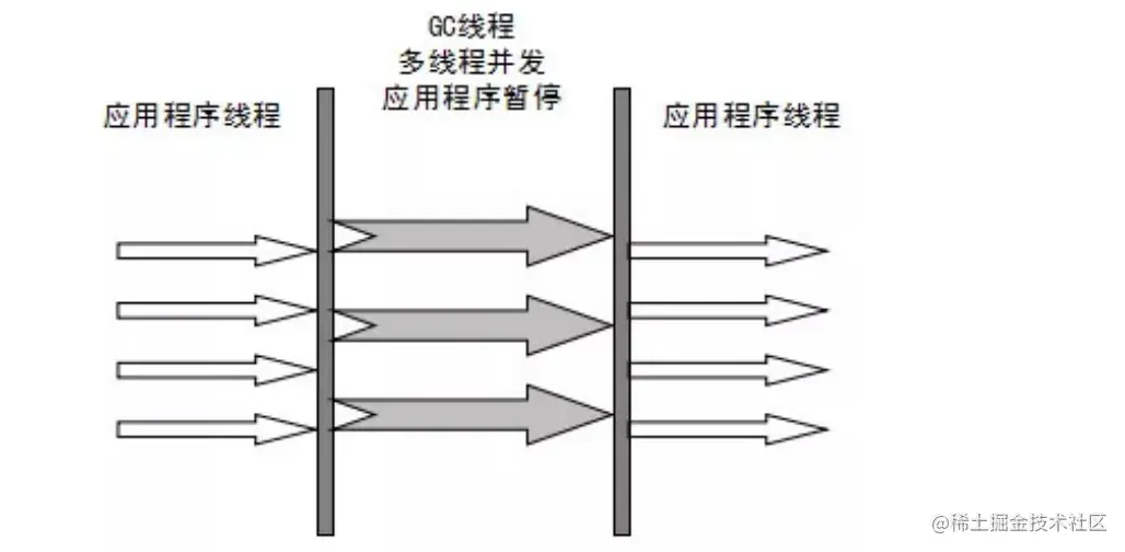 - Parallel 简单来说明下就是:多线程版本的Serial收集器,在触发回收线程的时候是由多个线程去回收对象(同样会暂停应用程序请求,也即是触发STW),更好的提升吞吐量和cpu的高效使用。Parallel Scavenge收集器的年轻代和老年代回收算法和Serial收集器是相同的 新生代采用的是复制算法、老年代使用的是标记整理算法。