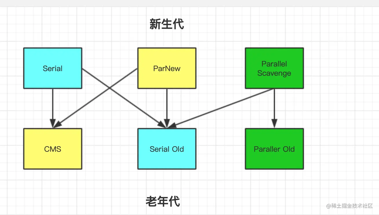 垃圾收集器是对上述对象垃圾回收算法的具体实现。当前在使用的垃圾收集器有G1、Epsilon、ZGC、CMS、ParNew、Serial、Serial old等。不同的垃圾收集器作用的分代也不同,同过相互组合使用,在具体的情况下用不同的搭配组合处理特定的情况,便能达到十分好的效果。这片文章主要谈到的是以下六种垃圾收集器的搭配使用。