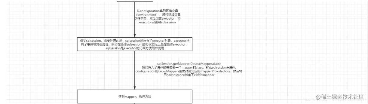 上面介绍了mybatis的核心组件及其作用,其实不论什么项目,不论什么框架,设计者都会像进行模块的划分,总体的设计,然后分组开发,所以不论是项目还是框架,都可以看作是一个一个的零件的组合,每一个零件就是一个模块,就像变形金刚似的,当然当某一个零件(模块)有问题或者不符合你的要求的时候,我们也可以将这个模块拿出来,运用重写,继承,重载等java 的特新对项目里的一个小零件(模块)进行改造,从而打造符合你们自己的框架,这也就是二次开发。下面我画了一个流程图去描述mybatis是如何进行工作的(图片太长,我就简单分成三张,从上往下看即可)
