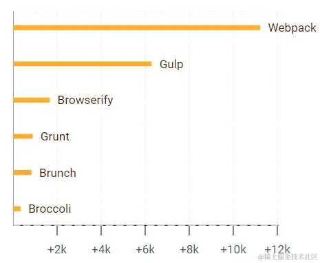 下面的图表对比了在过去12个月中,GitHub上 增加的 stars。