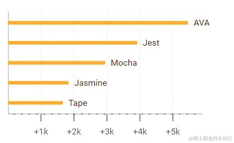 AVA, 由多产的 Sindre Sorhus创建的强调性能(并行测试)和ES6。 AVA的语法接近标准测试框架,如Tape 和 Node-tap。