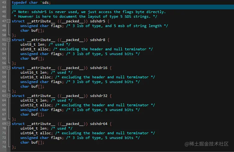 unsigned char flags; //用来表示当前sds类型是sdshdr8还是sdshdr16等