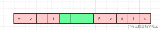 请看下面这张图,假设下面这张图就是内存里面的连续空间,可以很明显的看到,此时 wolf 和 Redis 两个字符串之间只有三个空位,那么这时候如果我们要将 wolf 字符串修改为 lonelyWolf,那么就需要 6 个空间,这时候下面这个空间是放不下的,所以必须要重新申请空间,但是假如说程序员忘了申请空间,或者说申请到的空间依然不够,那么就会出现后面的 Redis 字符串中的 Red 被覆盖了: