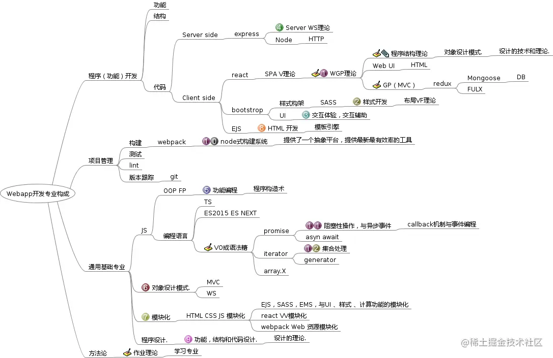 在2020年底我有一了次关于webapp工程专业分解的研究(webapp专业有很多子专业,包括基础专业),我大胆的假设了一种写总结的技术——以专业为基点,引导,整理和归纳所有研究碎片。这个技术的还需要一些论证,和技术。例如,怎么划分专业,专业的本质是什么。由于时间关系这个研究有待来年再续。最后附上最新的专业分类研究成果思维导图,和专业元知识。