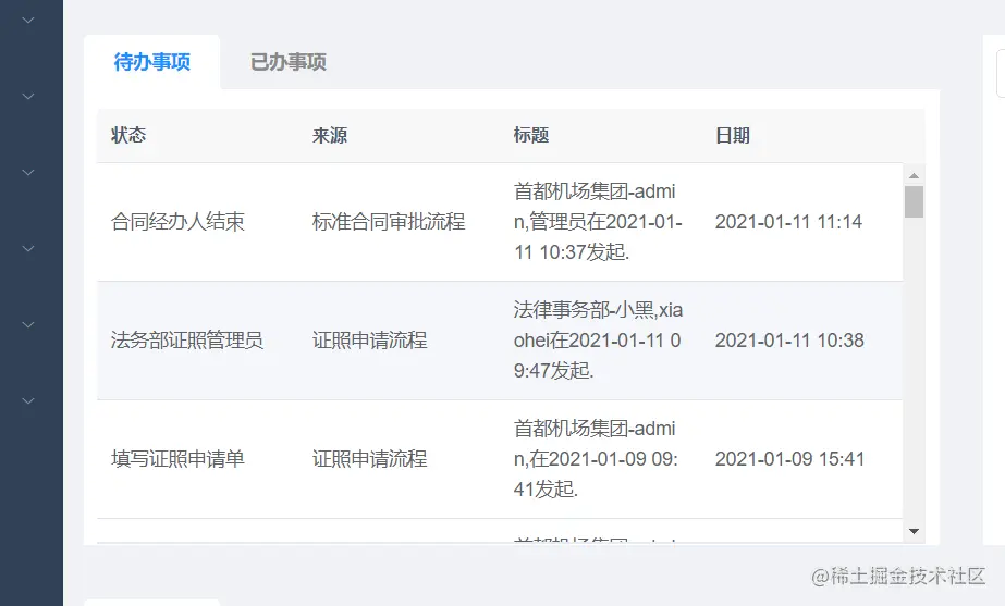 任务7041描述: “待办事项”和“已办事项”为静态页面,要求获取后台实时数据。