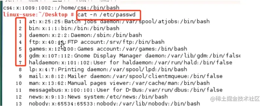 命令: cat -n /etc/passwd 查看passwd时,给文档添加上行号