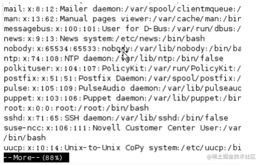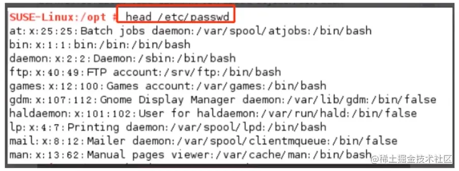 命令: head /etc/passwd 默认查看文件开头的前10行