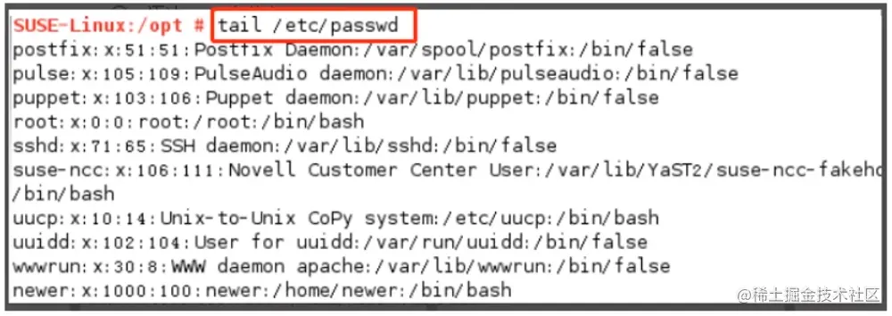 命令: tail /etc/passwd默认查看文件末尾的10行