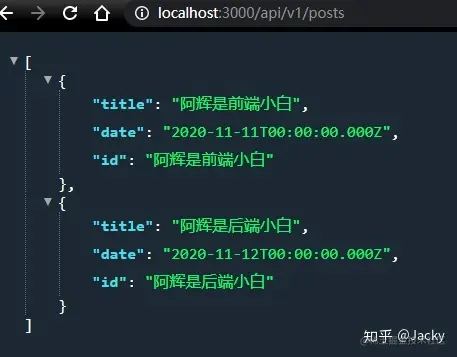 此时,再次访问 localhost:3000/api/v1/posts 页面,就能得到 markdown 目录里写的文章了