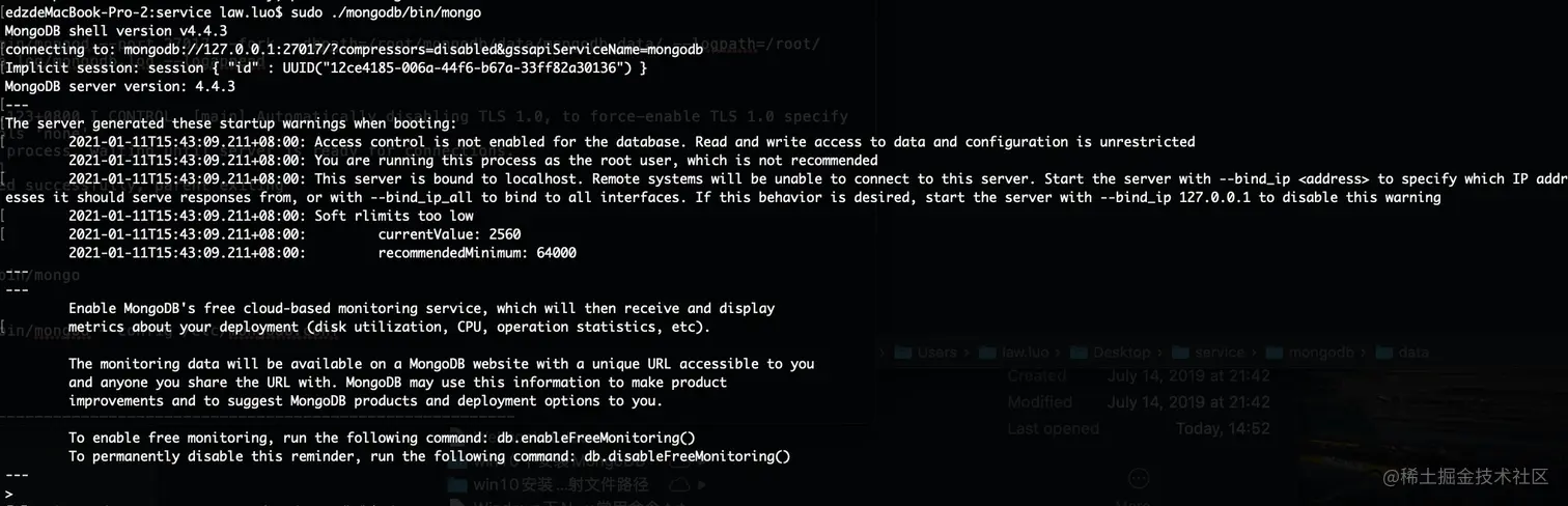 sudo mv xf mongodb-macos-x86_64-4.4.3 mongodb