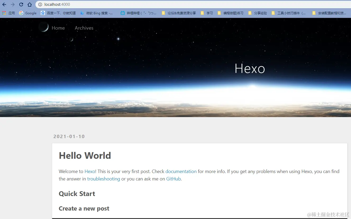 再次启动,打开网址,可以看到我们创建的博客出现了