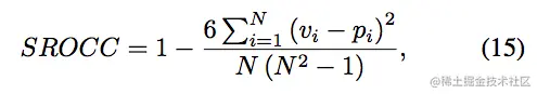 - the Spearman Rank Order Correlation Coefficient (SROCC)