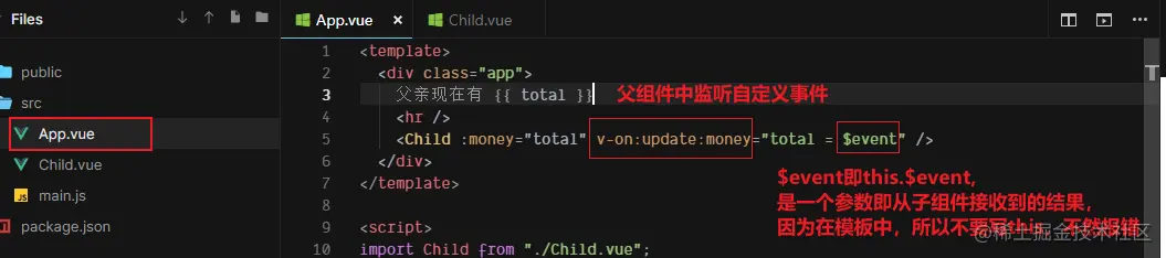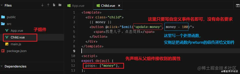 update:propName比如update:money - 此外,父组件模板中使用子组件位置处需将所传的prop改写为