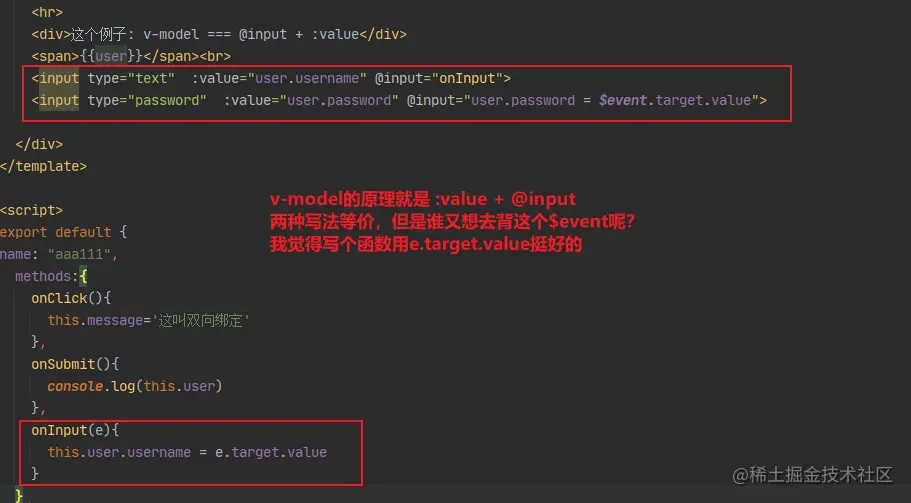 e.target.value而不是e - 因为这两者本质是 语法糖, 都替代了以下的写法