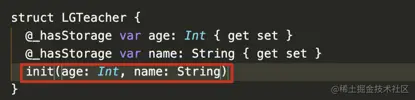 这是因为编译器在结构体中自动帮助我们合成了初始化方法,也就以为着我们可以这样调用: