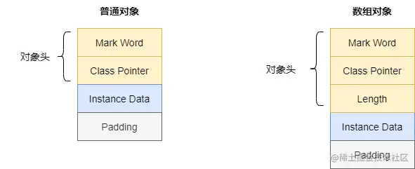 - Objects are 8 bytes aligned: 对象大小是8字节整数倍,如果不够使用填充来补充