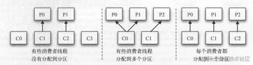 一个分区只能属于一个消费者线程,将分区分配给消费者有以下几种场景。