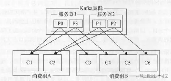 阅方,即消费组中的所有消费者 。 比如 1个主题有4个分区, 1个消费组有2个消费者,那么每个消费者都会分配到2个分区 。