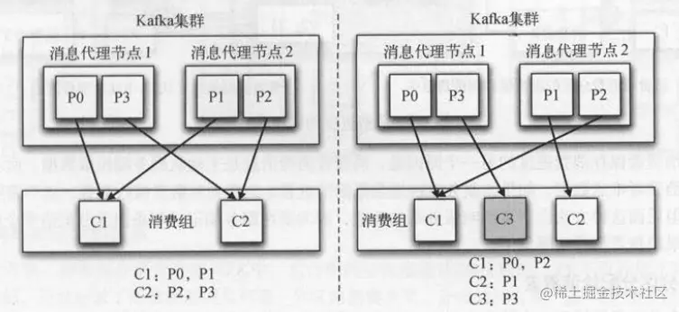 如果一个消费者宕机了,分配给这个消费者的分区需要重新分配给