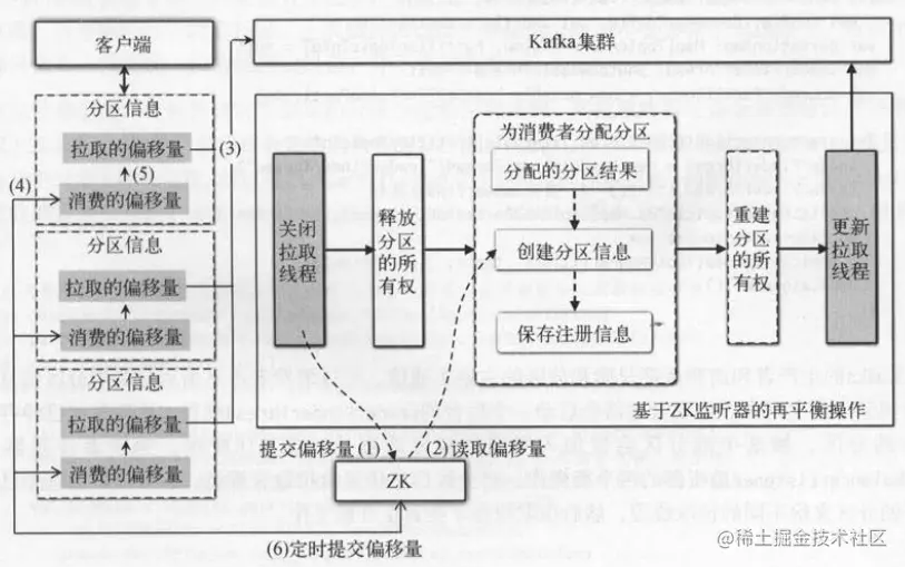 (2)为消费者分配分区时 ,会从ZK中读取分区消费到的最新位置 。