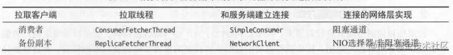 消费者和备份副本的拉取线程采用了不同的方式和服务端建立网络连接。