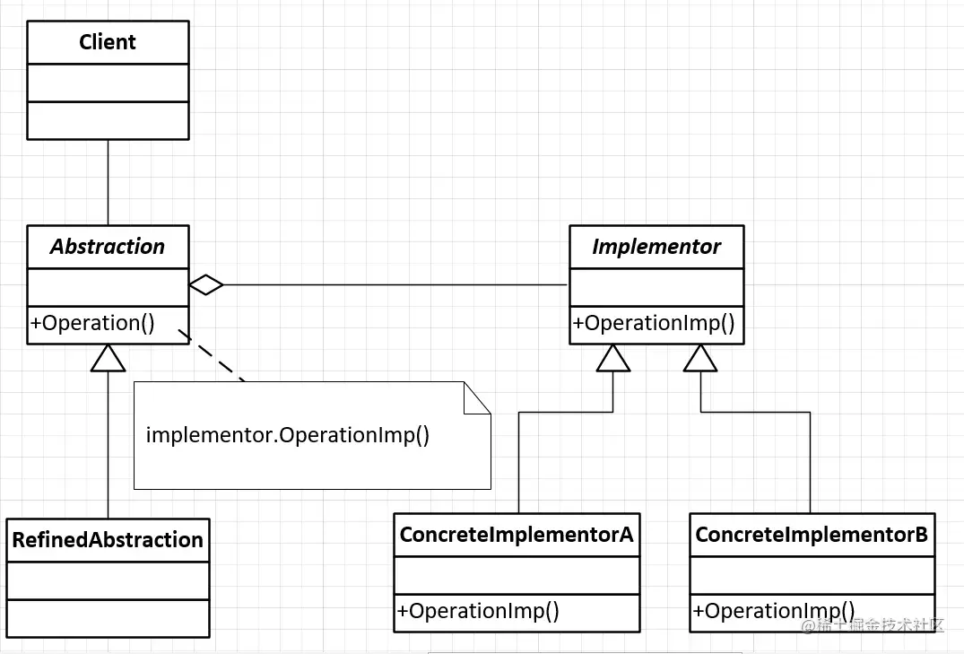 Implementor implementor1 = new ConcreteImplementorA();