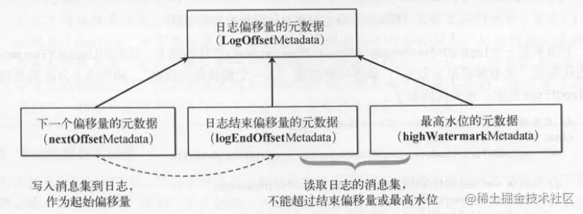 nextOffsetMetadata变量是一个关于日志的偏移量元数据对象( LogOffsetMetadata ) 。