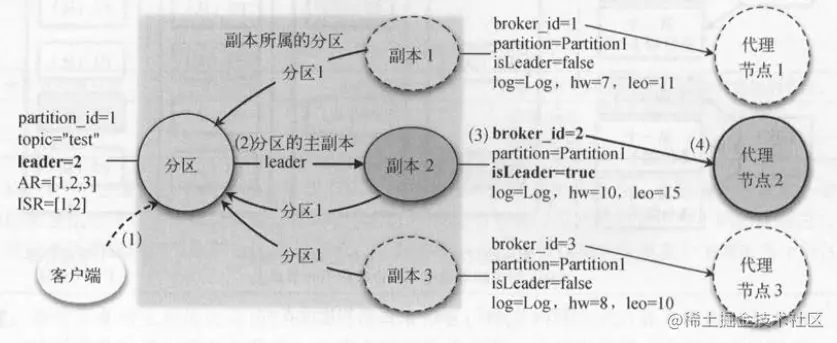 Log对象的引用,表示副本对应的日志文件 。 分区和副本与外部交互的对象分别是客户端和消息代理节点 。 客户端访问分区,先获取分区的主副本,