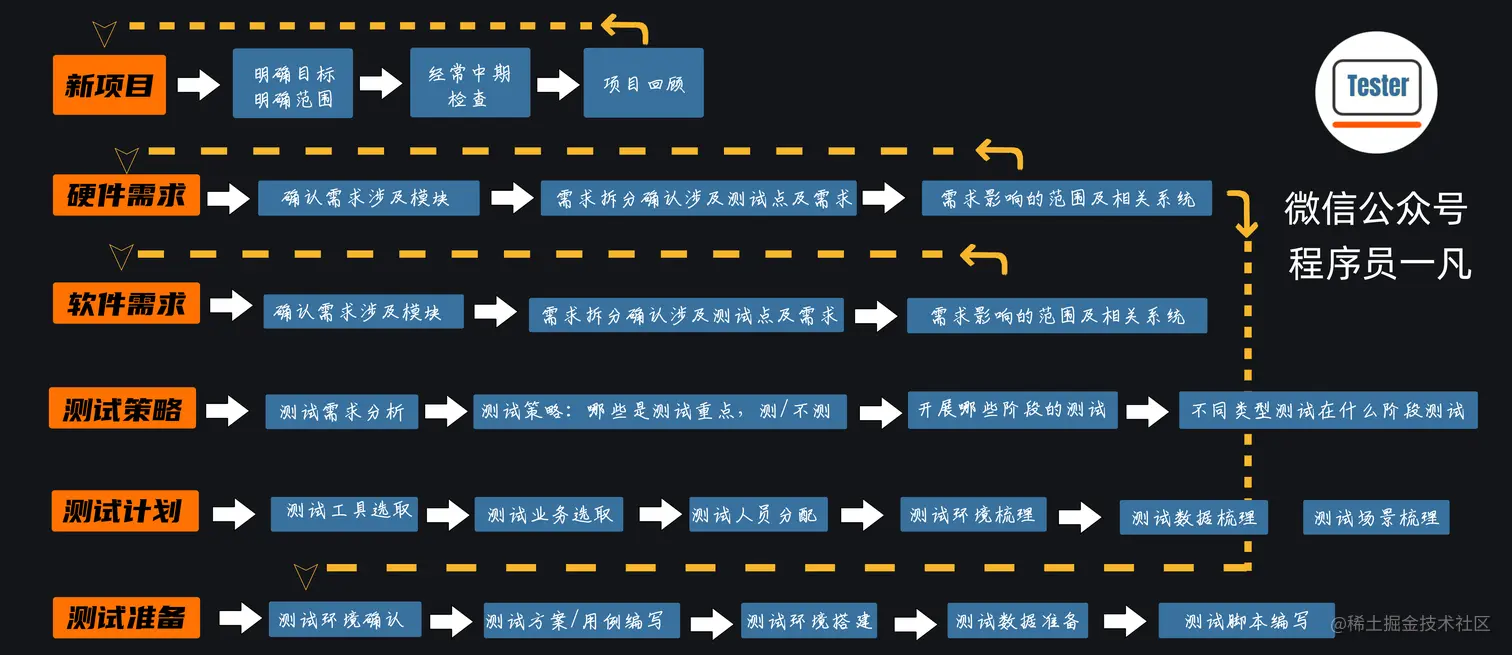 大家好,我是一凡,花了一下午的时间终于把软件测试项目流程图做好了。