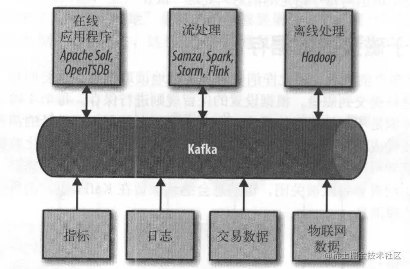 警系统读取这些消息。 Kafka 也可以用在像 Hadoop 这样的离线系统上,进行较长时间片 的数据分析,比如年度增长走势预测。日志消息也可以被发布到 Kafka 主题上,然后被路
