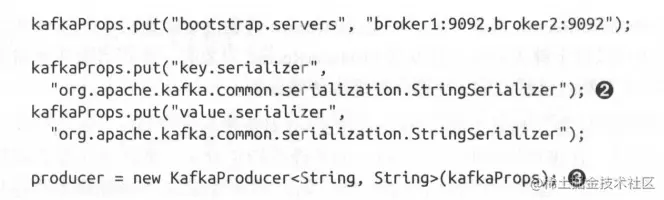 下面的代码片段演示了如何创建一个新的生产者,这里只指定了必要的属性,其他使用默认设置。