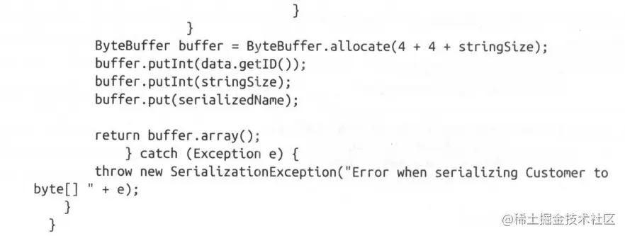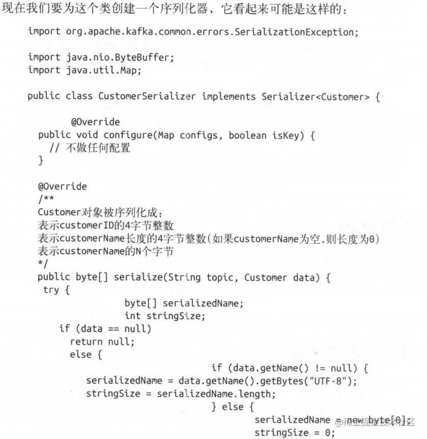足以满足大部分场景的需求。接下来演示如何开发自己的序列化器,并介绍 Avro 序列化器作为推荐的备选方案。